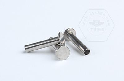 安裝時尾部空心部分受擠壓向外翻邊,形成卡扣,固定連接件。 扁圓頭半空心鉚釘主要用于金屬薄板或皮革、帆布、木料等非金屬材料的鉚接場合。
