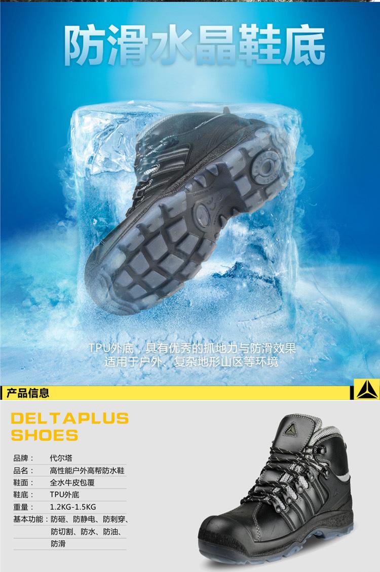 商品名稱:代爾塔 防水勞保鞋男 戶外工地高幫安.全鞋 防砸防靜電防穿刺防油防滑工作鞋 301911 黑色/棕色